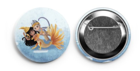 2.25 inches round buttons feature full color printing and a rotating durable steel pin-back.