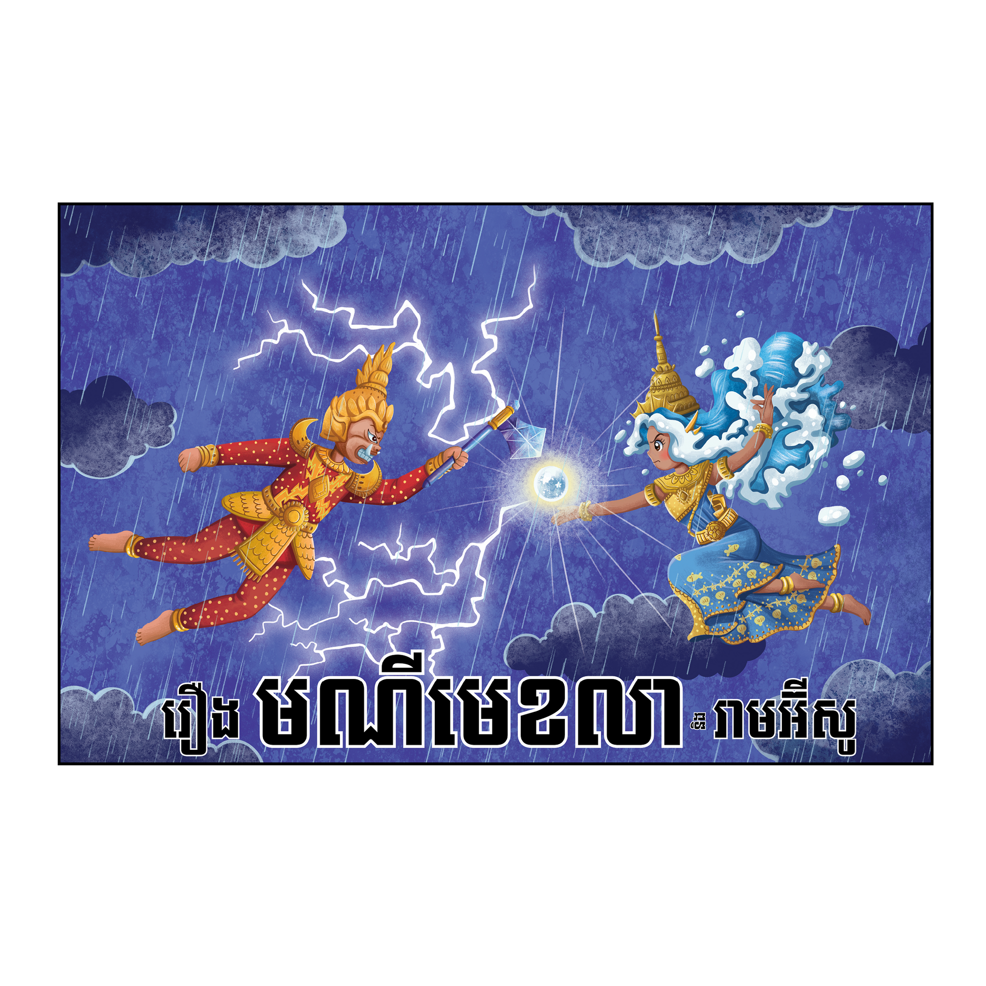 Moni Mekhala and Ream Eyso in the midst of their battle. Edge to edge full illustration on 11 in x 17 in thick cardstock.