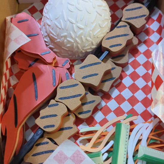 Bring the sizzling spirit of Cambodian street food into your child’s playtime! Part of the From My Kitchen collection, this 3D-printed pretend food set features fun, chunky beef and chicken pieces designed to be placed onto mini skewers—helping kids develop hand-eye coordination and fine motor skills through hands-on, interactive play.