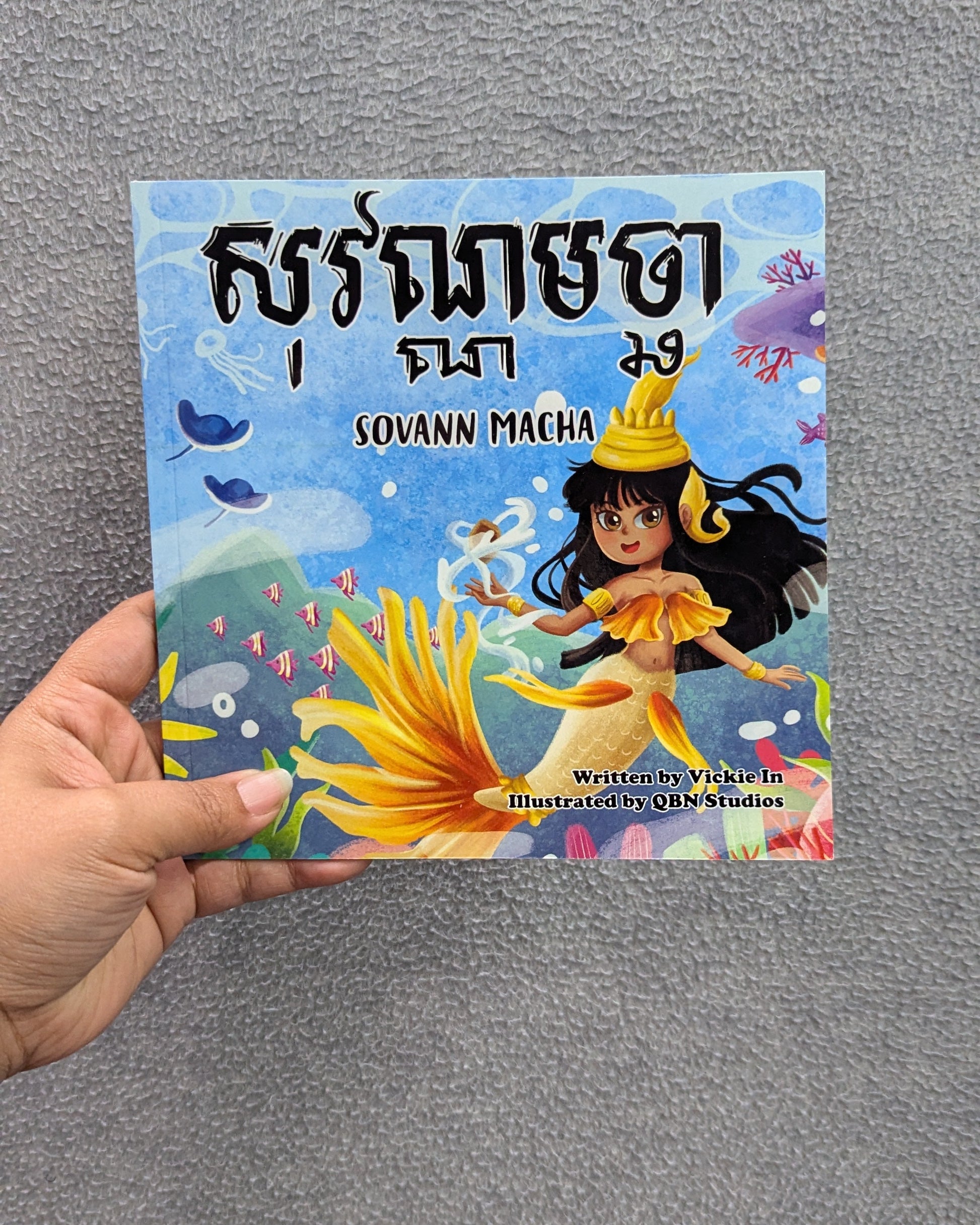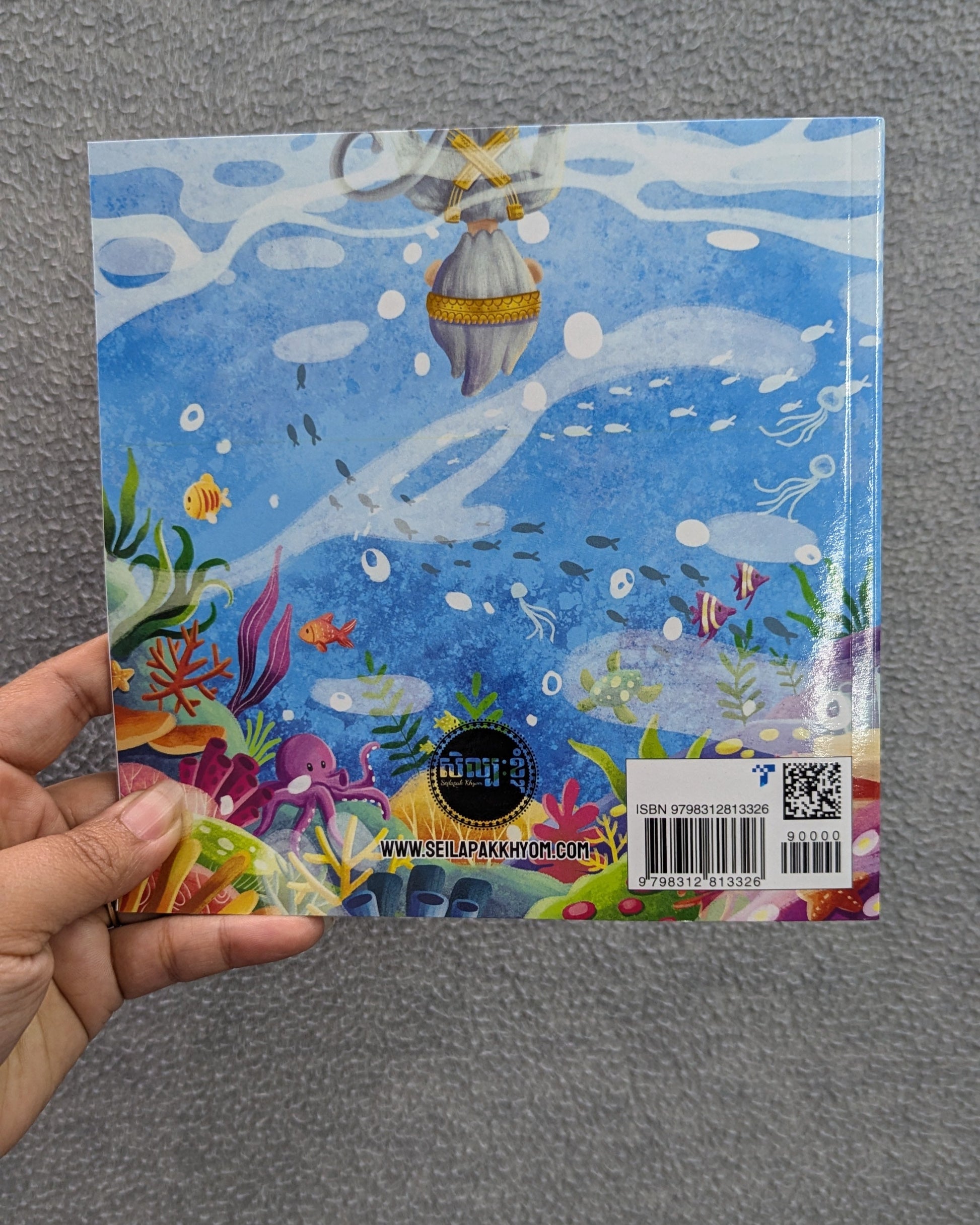 1 paperback copy of 7 in x 7 in book with full page color illustrations in Khmer and English with transliteration